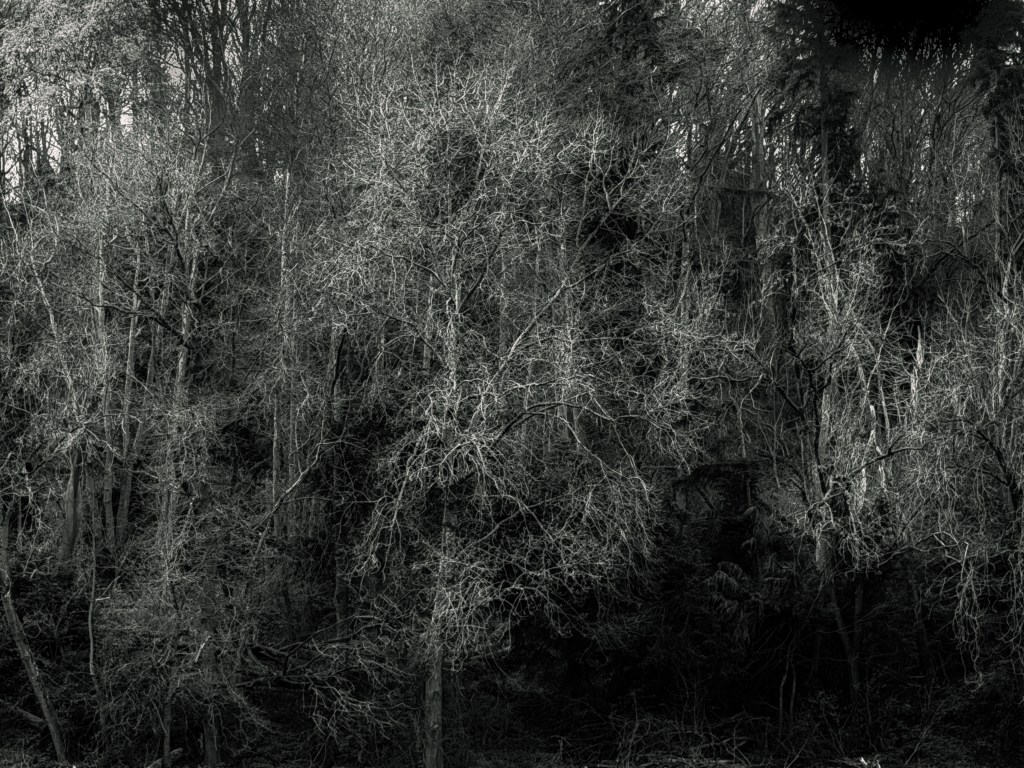 It was entirely unexpected – the unease I felt, I mean, on entering the sodden weight of Asney Woods. I have never, to date, felt anything quite like it, and hadn’t thought I would. It never amounted to fear, but I rather suspect it might have eventually had I remained within the dark canopy of twisted together tree limbs. There was always just enough light to lift hope – an intermittent watery sunlight that seeped through the damp greenery. No, it was a disquietude of the spirit, a sense that the woods were looking in on me with a deep suspicion. I felt wholly surrounded by it and friendless.